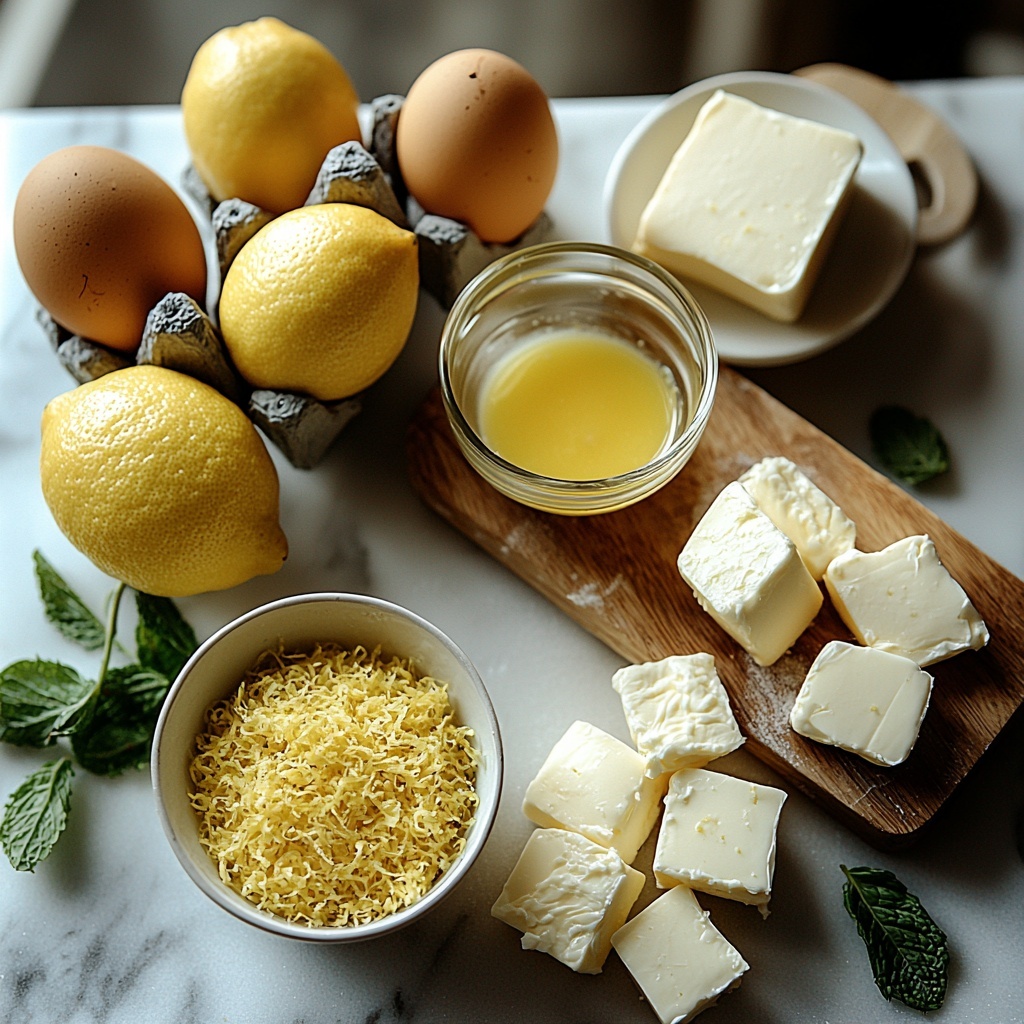 Preparing this Lemon Curd Recipe is all about fresh, wholesome ingredients that pack vibrant flavor and indulgent creaminess. Each item on the list plays a crucial role: lemons for that zingy tartness, sugar to balance it perfectly, eggs for that silky custard body, and butter to round it out with richness and smooth texture.
