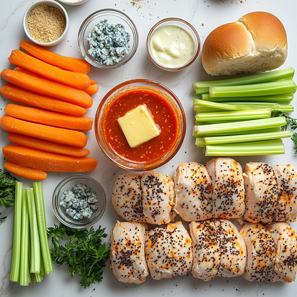 Getting the ingredients right is the secret to nailing this dish, and the best part is that each one is straightforward yet essential to creating those irresistible flavors and textures. From the succulent chicken to the zingy buffalo sauce, every component plays its part in making these sandwiches pop with taste and color.