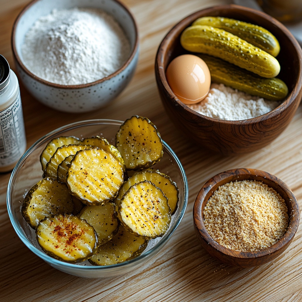 These simple ingredients come together in the most magical way, each playing a crucial role in building that irresistible crispy coating and bold flavor you want from fried pickles.
