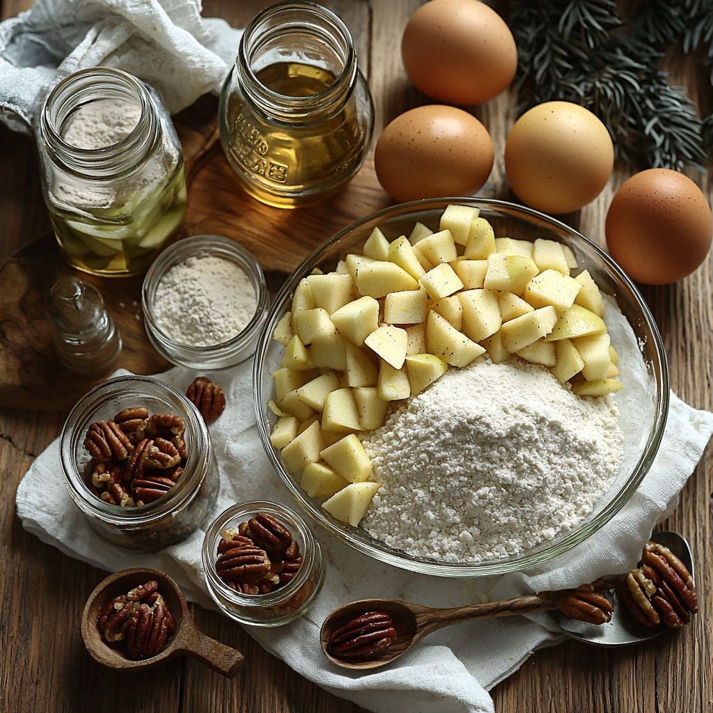 Simple, everyday ingredients come together in this Apple Bundt Cake Recipe to create a masterpiece of flavor and texture. Each component plays a key role—from the tender crumb that the flour and baking powder build, to the rich sweetness from the sugars and the natural fruity burst from fresh apples.