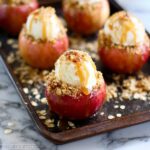 You can make the apple filling a day ahead and keep it refrigerated. Gently warm it before stuffing the apples to ensure it’s soft and melty for perfect texture when baked.