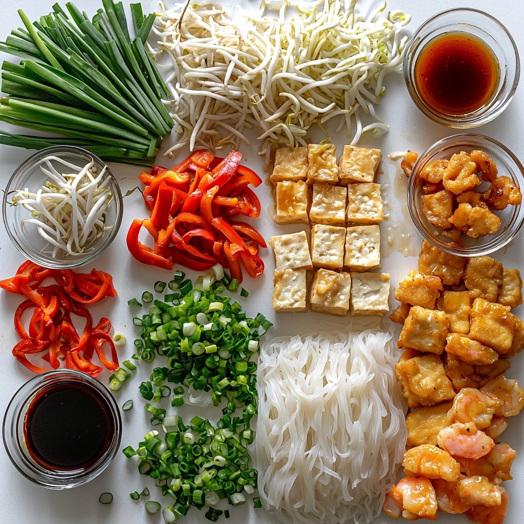 Gathering simple yet essential ingredients is the first step toward creating this mouthwatering dish. Each component plays a critical role: the flat rice noodles provide a tender, chewy base; the sauces infuse depth and savoriness; and the fresh veggies and proteins add texture and color, making your plate both beautiful and delicious.