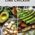 On each plate, layer a generous scoop of the fragrant jasmine rice, top it with a grilled chicken breast, and spoon a hearty portion of the avocado mixture over the chicken. Finish by adding a lime wedge on the side for an optional but much-loved burst of zesty flavor.