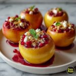 Baked Apples with Feta, Honey, and Cranberries is a delightful and cozy dessert perfect for chilly evenings. This recipe combines the natural sweetness and tartness of firm apples with a savory-sweet filling of crumbled feta cheese, dried cranberries, cinnamon, and vanilla. Drizzled with honey and baked to perfection, these apples offer a comforting and elegant dish that’s simple to prepare and sure to impress.
