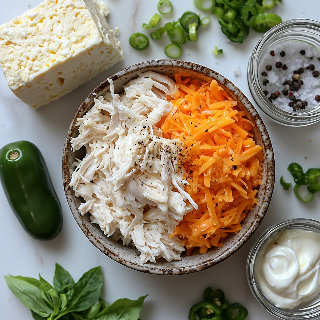 Getting the ingredients right for the Baked Jalapeno Chicken Dip Recipe is both simple and crucial. Each component plays a vital role, whether it’s adding creaminess, tang, a touch of heat, or that melty cheesy appeal that makes this dip utterly addictive.