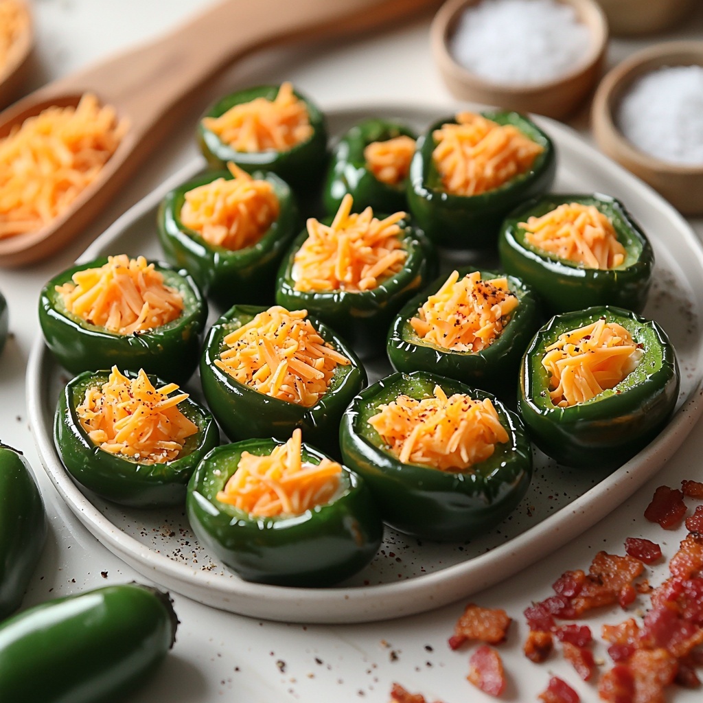 Slice the jalapeño peppers lengthwise and carefully scoop out all the seeds and white membranes. Removing the membranes reduces the heat slightly and creates the perfect hollow for stuffing, making the poppers enjoyable for a wide range of spice lovers.