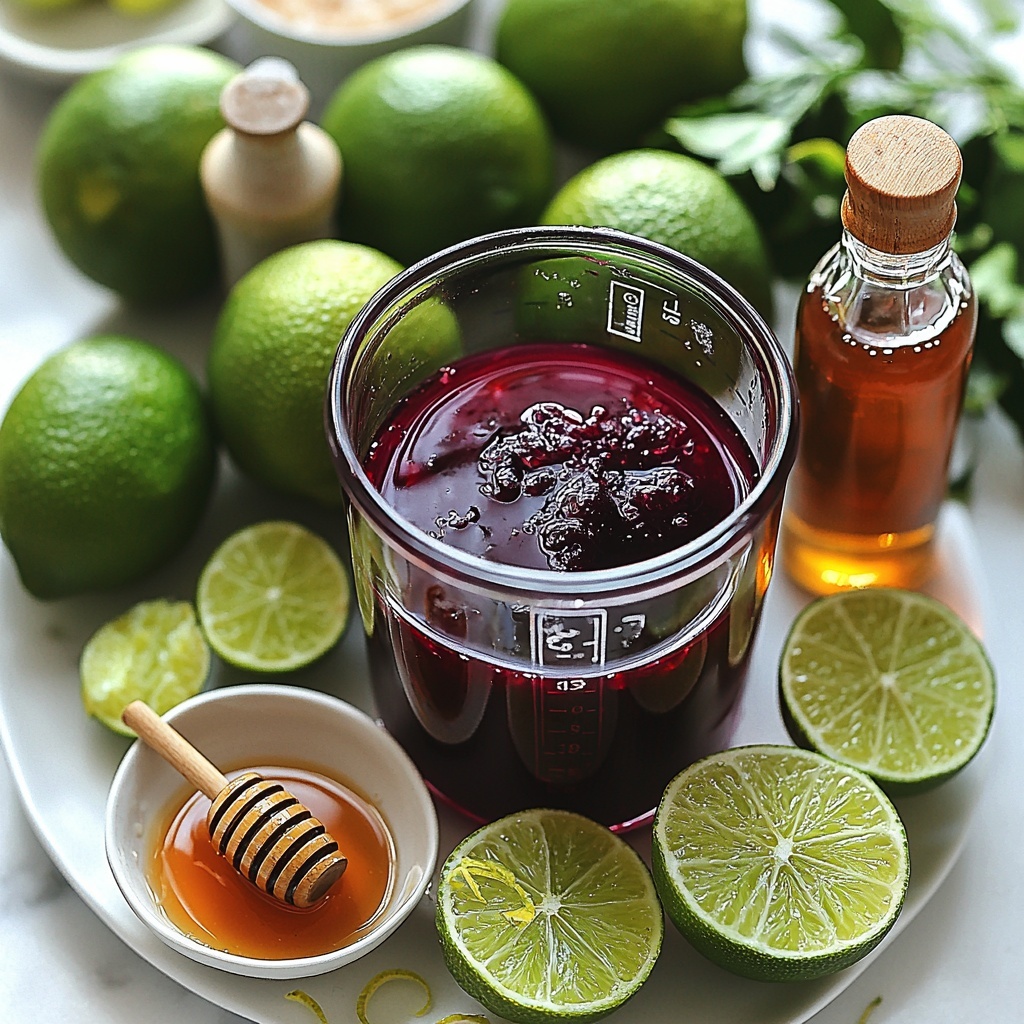 Start by combining all the core ingredients—tart cherry juice, lime juice, honey, lime zest, vanilla extract, and sea salt—into either a jar or a blender. Shake vigorously or blend for about 2 minutes until the mixture becomes lightly frothy. This step ensures all those bold flavors meld beautifully, creating a smooth, flavorful concentrate that’s the heart of your mocktail.
