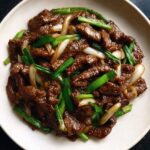A quick and flavorful Beef and Onion Stir Fry featuring tender slices of flank steak cooked with aromatic garlic, ginger, and scallions. The savory stir fry sauce combines soy sauces, hoisin, oyster sauce, and Shaoxing wine for a perfect balance of umami and sweetness. Ready in 30 minutes, this dish is ideal served over steamed jasmine rice or noodles.