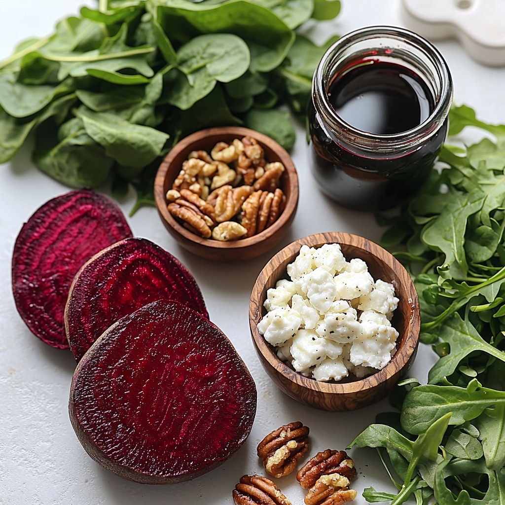 Getting the ingredients right is key to capturing the true essence of this Beet and Goat Cheese Salad Recipe. Each component plays a crucial role, from the deep sweetness of roasted beets to the peppery punch of fresh greens and the crunchy nuttiness that adds a satisfying bite.