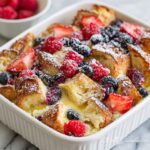 This Berry Croissant Bake is a delightful and easy-to-make breakfast casserole featuring flaky croissants soaked in a creamy mixture with fresh strawberries, blueberries, and raspberries, then baked to golden perfection. Perfect for a weekend brunch or holiday morning, this dish combines the buttery texture of croissants with the sweetness of berries and a rich cream cheese custard.