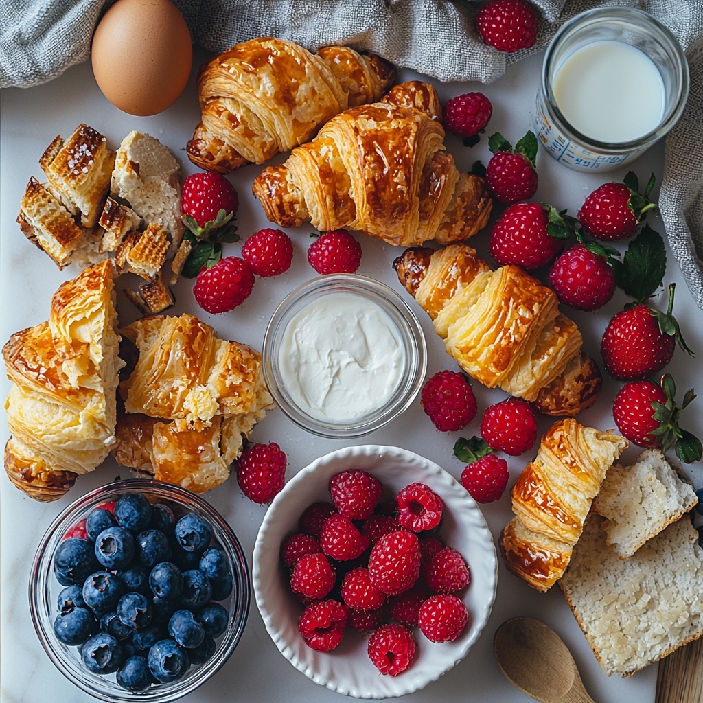 Simple ingredients are all it takes to create a show-stopping Berry Croissant Bake Recipe. Each component plays a key role, whether it’s the flakiness from the croissants, the sweetness and color from the berries, or the creamy custard that ties everything together into a heavenly bake.
