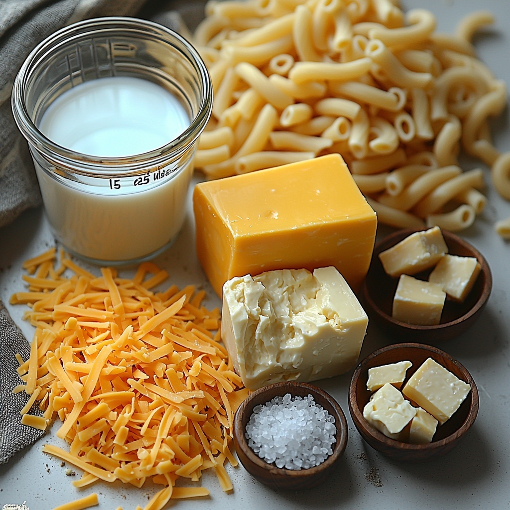 • 8 ounces extra-sharp yellow cheddar cheese (shredded by hand): Offers bold, tangy flavor that’s a cornerstone of classic mac and cheese.