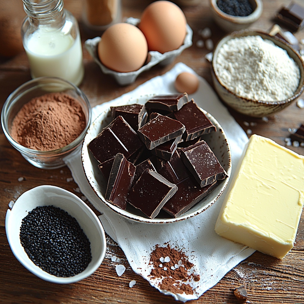 Gathering the right ingredients is the first step to nailing this recipe. Each component plays a vital role: from the creamy butter that ensures richness, to the black sesame paste which delivers that distinctive flavor and striking visual contrast. The balance of sugars, flour, and chocolate guarantees that perfect fudgy texture and depth in every bite.