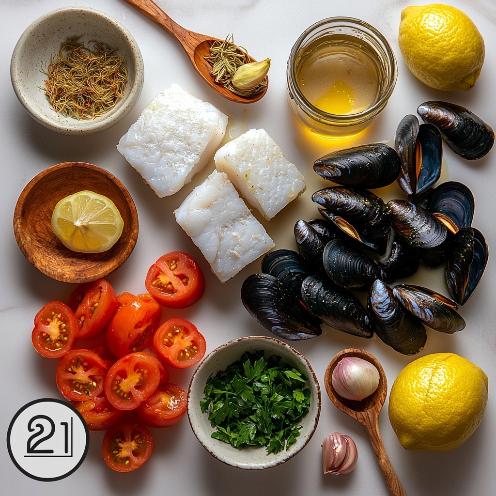 - 1 lb white fish fillets (such as cod or haddock): Provides a flaky, delicate base for the stew’s seafood medley.