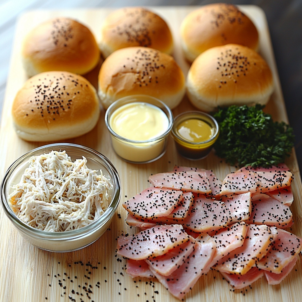 To create the magic of these sliders, you’ll only need a handful of simple yet essential ingredients. Each one plays a key role in building layers of flavor and texture—from the softness of the Hawaiian rolls to the savory punch of Dijon mustard and the richness of butter that ties everything together beautifully.