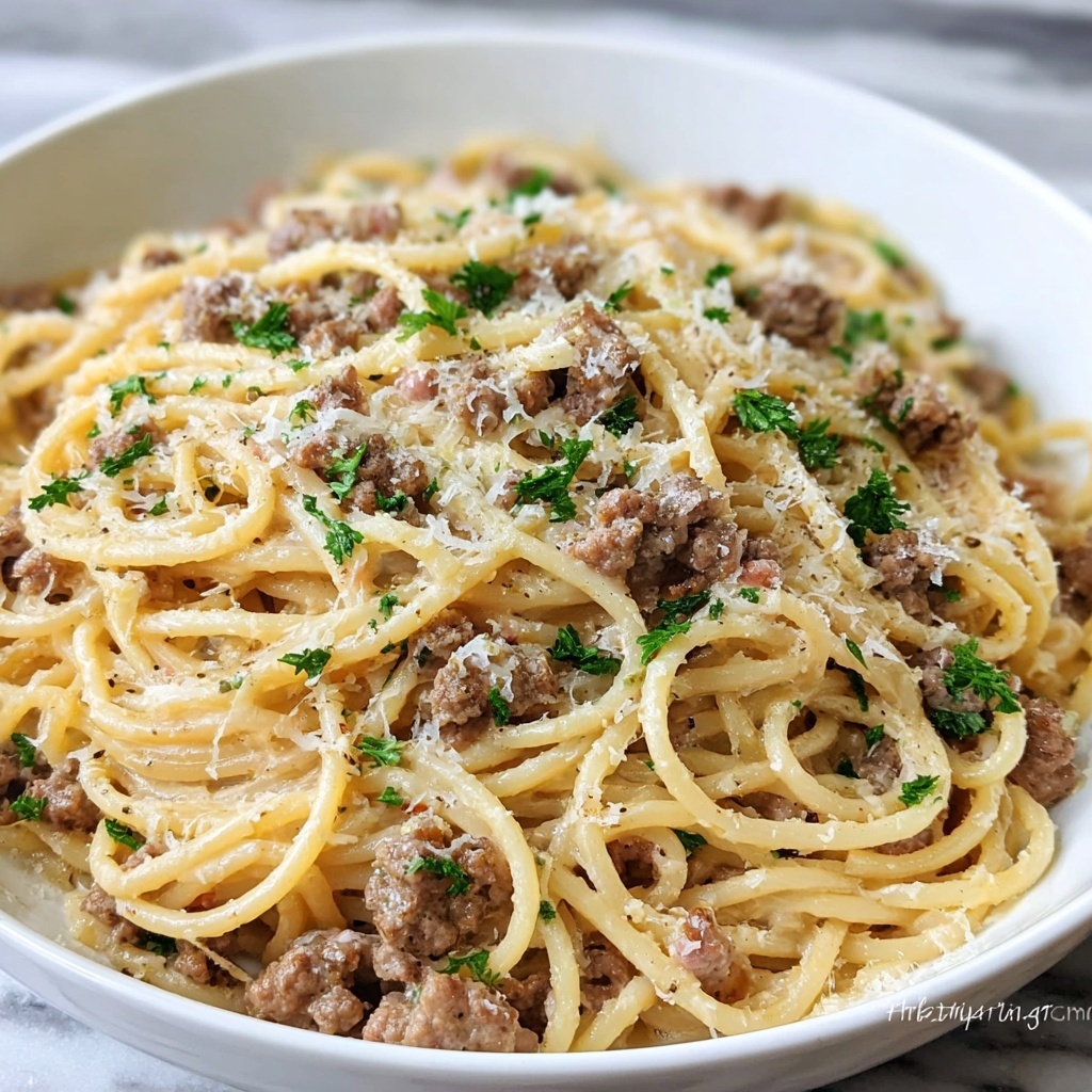 Cajun Beef Spaghetti in Creamy Three-Cheese Parmesan Sauce Recipe
