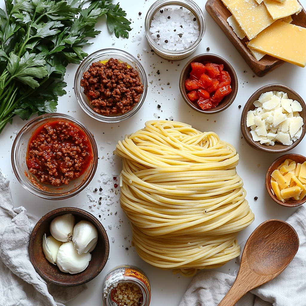 The magic of this Cajun Beef Spaghetti in Creamy Three-Cheese Parmesan Sauce Recipe lies in the simplicity and purpose of each ingredient. From the staple pantry items to the vibrant spices and fresh additions, every component contributes texture, color, and irresistible flavor complexity.