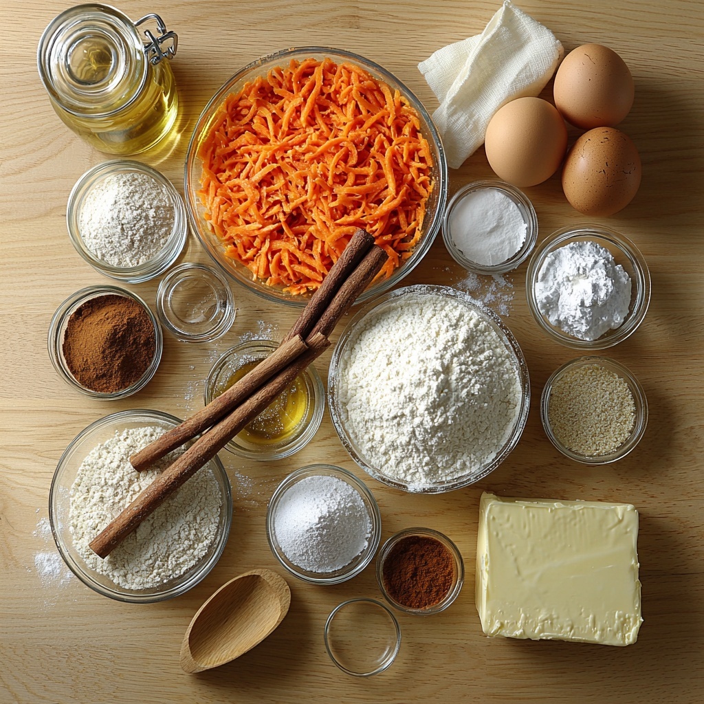 All of the ingredients in this recipe are simple pantry and fridge staples, yet each plays a vital role in building the cake’s flavor, color, and tender crumb. From spices that create that signature carrot cake warmth to the cream cheese frosting that adds an irresistibly rich finish, everything works in harmony.