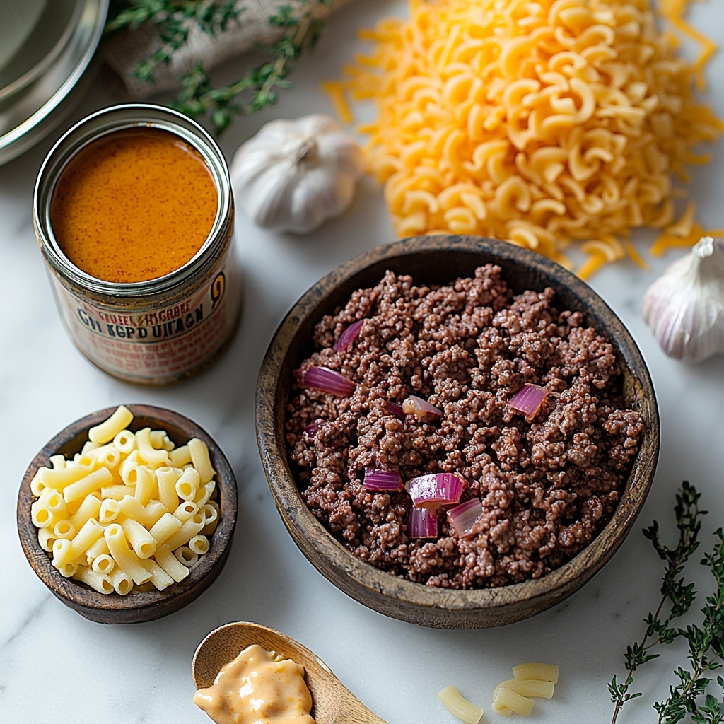 The beauty of this recipe is in its simplicity—with just a handful of essential ingredients, you can create an incredibly flavorful and satisfying dish. Each item adds its own unique touch, from the juicy beef and aromatic garlic to the creamy cheese and tender pasta that soak up all those delicious juices.
