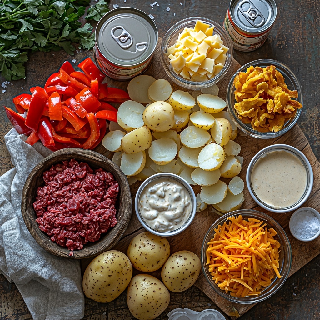 This Cheesy Potato Beef Bake Recipe calls for simple, pantry-friendly ingredients that work together beautifully. Each element adds layers of flavor, texture, or color, making the dish as satisfying to the eye as it is to the palate.