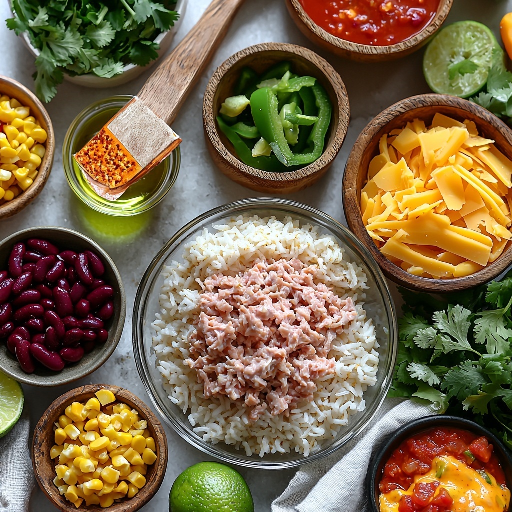 The beauty of this Cheesy Turkey Rice Taco Skillet Recipe lies in the simplicity of its ingredients. Each one is thoughtfully chosen to bring vibrant color, rich texture, and bold flavor to the dish, making the cooking process both straightforward and incredibly rewarding.