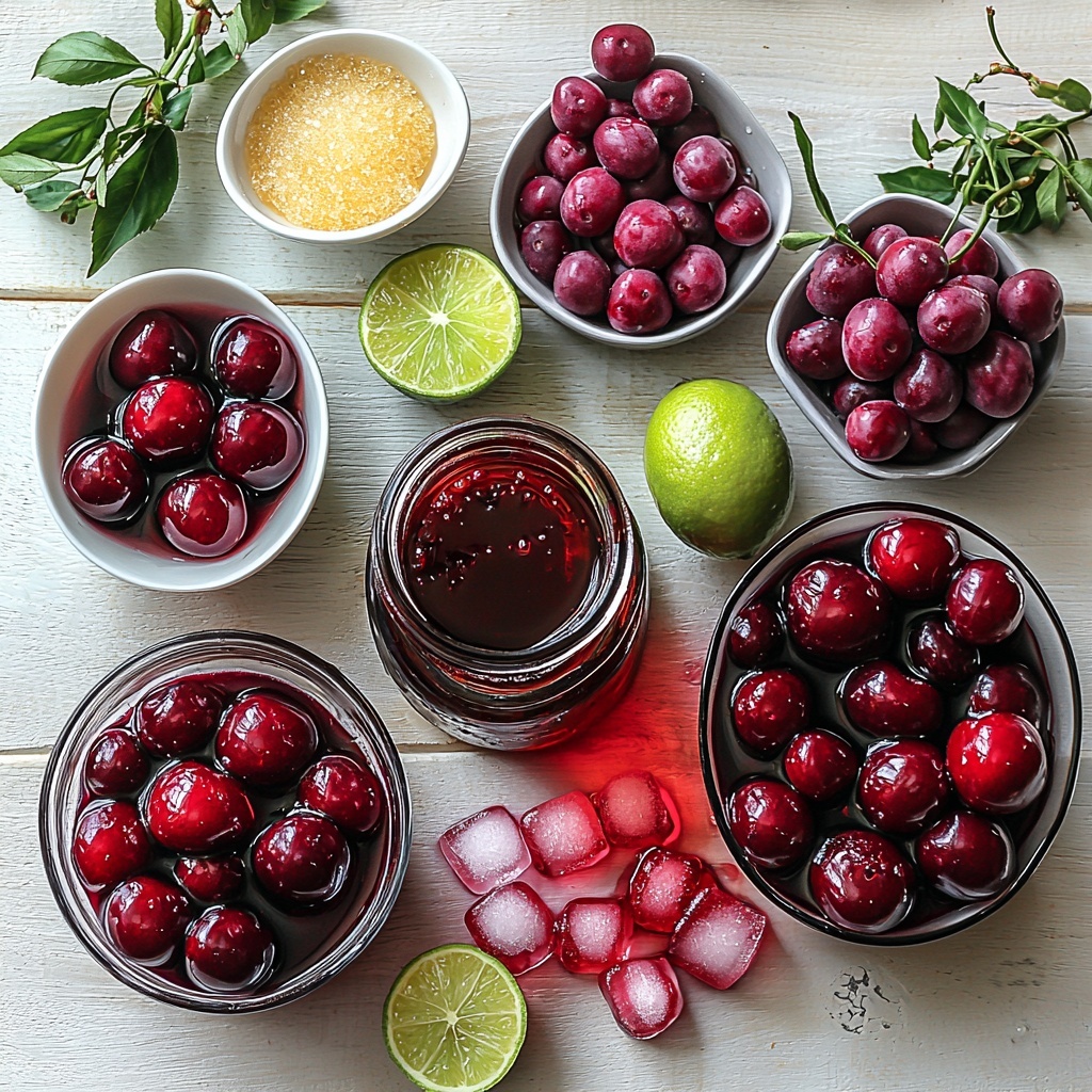 Gathering the ingredients for this Cherry Hibiscus Refresher Recipe is a breeze because each element is straightforward yet essential. From the ripe cherries to the aromatic hibiscus tea, every component contributes a unique texture, flavor, or color punch that brings the refreshment to life.