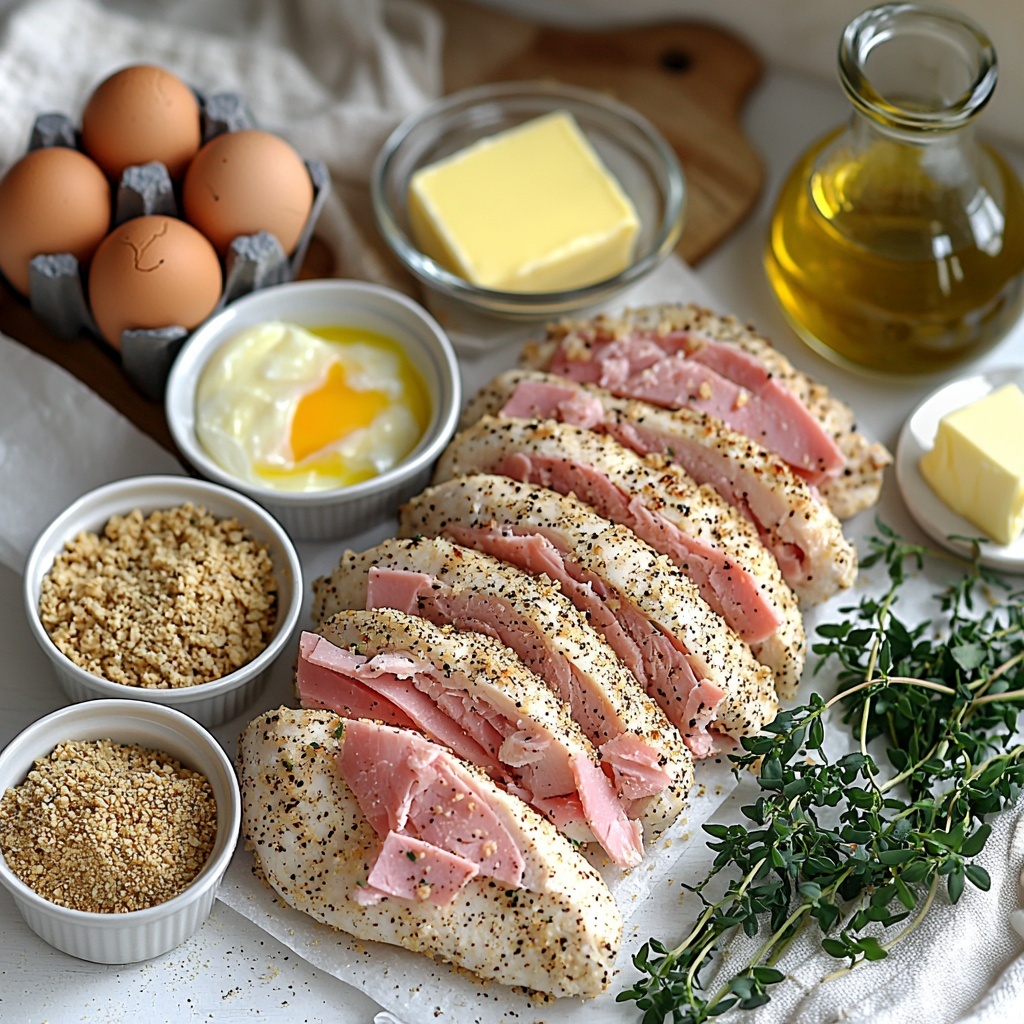 The magic of this Chicken Cordon Bleu Recipe lies in its straightforward ingredients, each chosen to balance taste, texture, and color perfectly. From the savory ham to the crunchy breadcrumb coating, every element plays a crucial role in crafting this dish.