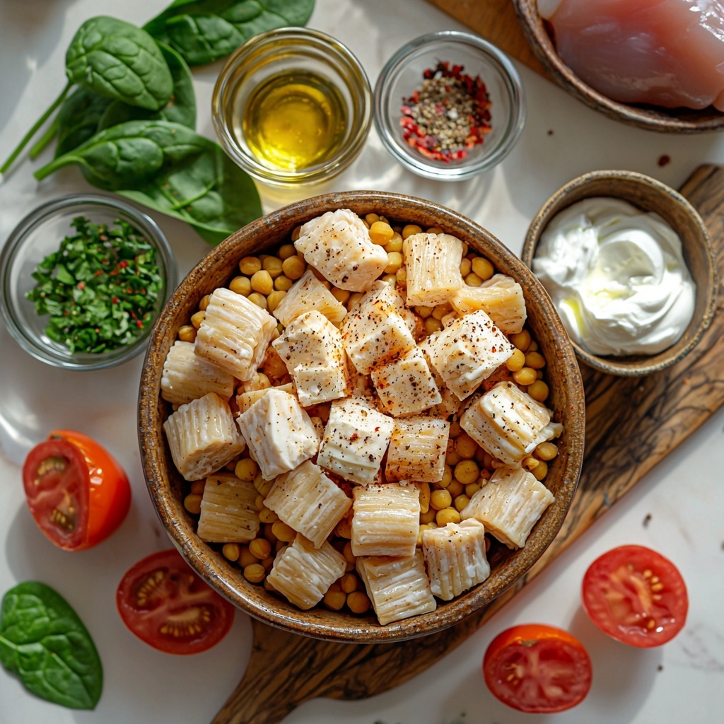 This Chicken Creamy Protein-Packed Pasta Bowl Recipe keeps it straightforward with essential ingredients that each bring their own magic to the dish—whether it’s the rich creaminess, fresh bursts of color, or protein-packed pasta that fuels your day.