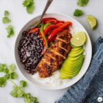 - Assemble Bowls: Divide the prepared cilantro-lime rice equally among four bowls. Top each bowl with sliced chicken and the sautéed bell pepper and onion mixture. Add desired toppings such as sour cream, avocado, shredded cheese, salsa, or fresh cilantro. Serve immediately and enjoy.