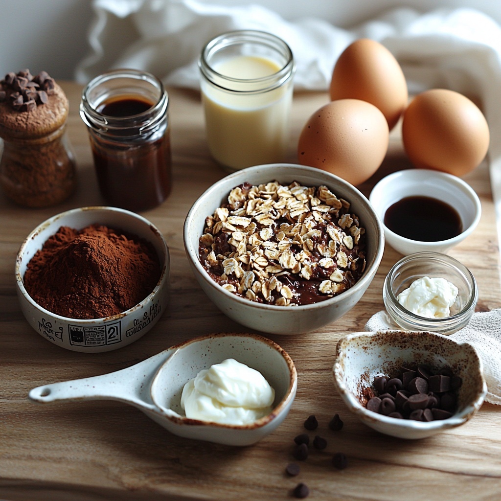 These ingredients are simple staples, yet together they create a delightful harmony of flavor and texture. Each one plays a key role: the oats provide hearty substance, the cocoa powder and chocolate milk deliver deep chocolate flavor, and the Greek yogurt keeps the bake moist while adding a pleasant tang. Let’s dive in!