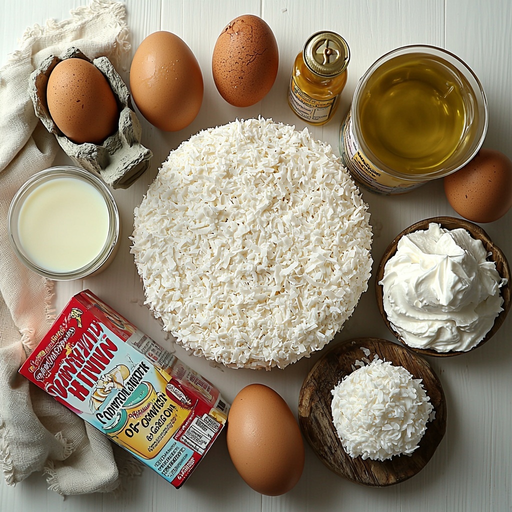 These ingredients are wonderfully straightforward but each plays a crucial role in building the incredible layers of flavor and texture this cake offers. From the light cake base to the creamy coconut filling and fluffy topping, every item works together to create a harmonious, unforgettable dessert.