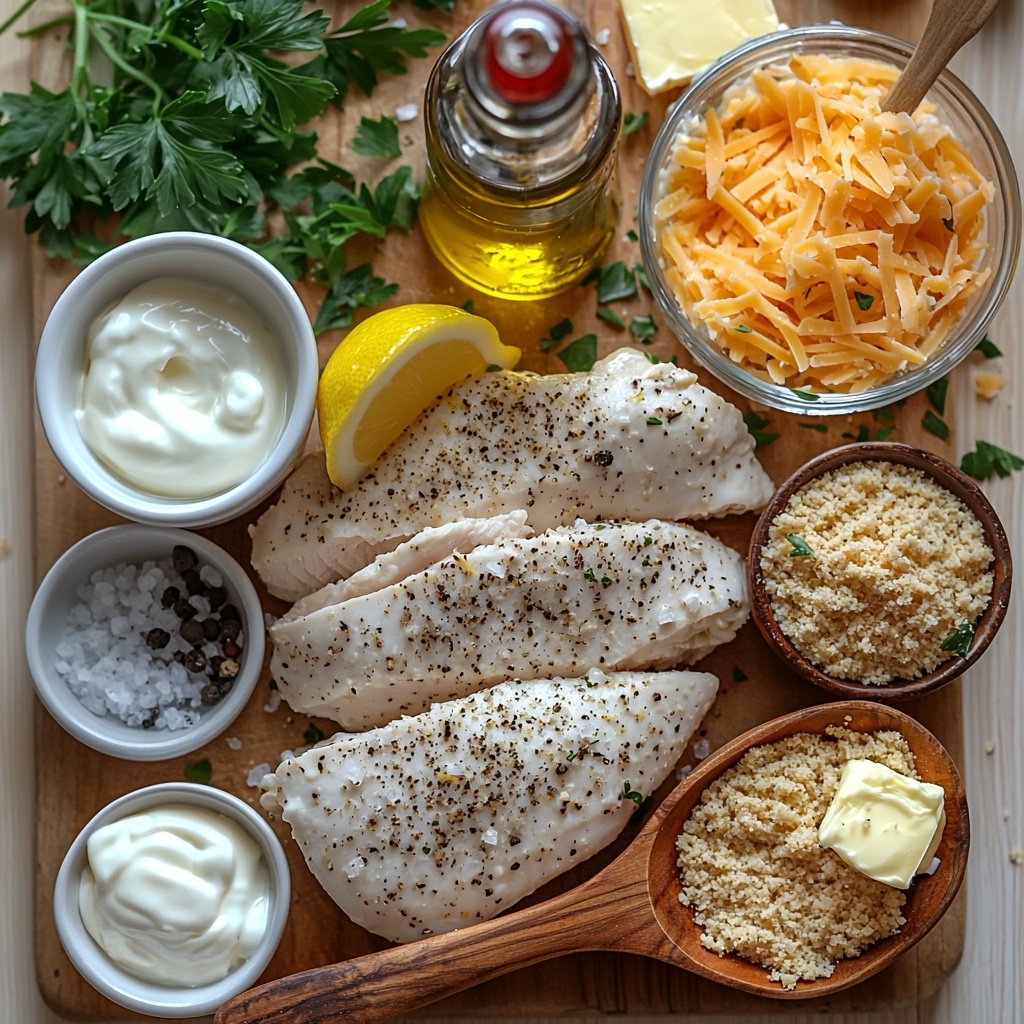 Start by preheating your oven to 400°F (200°C) and greasing an oven-safe skillet or baking dish. Then, take your boneless skinless chicken breasts, pat them dry with paper towels to ensure the coating sticks well, and slice them in half horizontally or pound them evenly if needed to get uniform thickness. This ensures even cooking, so no chewy or dry spots sneak in. Season both sides with salt, black pepper, garlic powder, onion powder, and Italian seasoning, setting the flavor foundation for the dish.