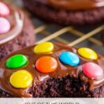 - Apply Ganache and Toppings: Spoon about ¾ teaspoon of ganache onto each cooled cookie and spread evenly. Sprinkle mini rainbow candy coated chips on top for a colorful, festive finish. Let the ganache set for about 1 hour or enjoy immediately.