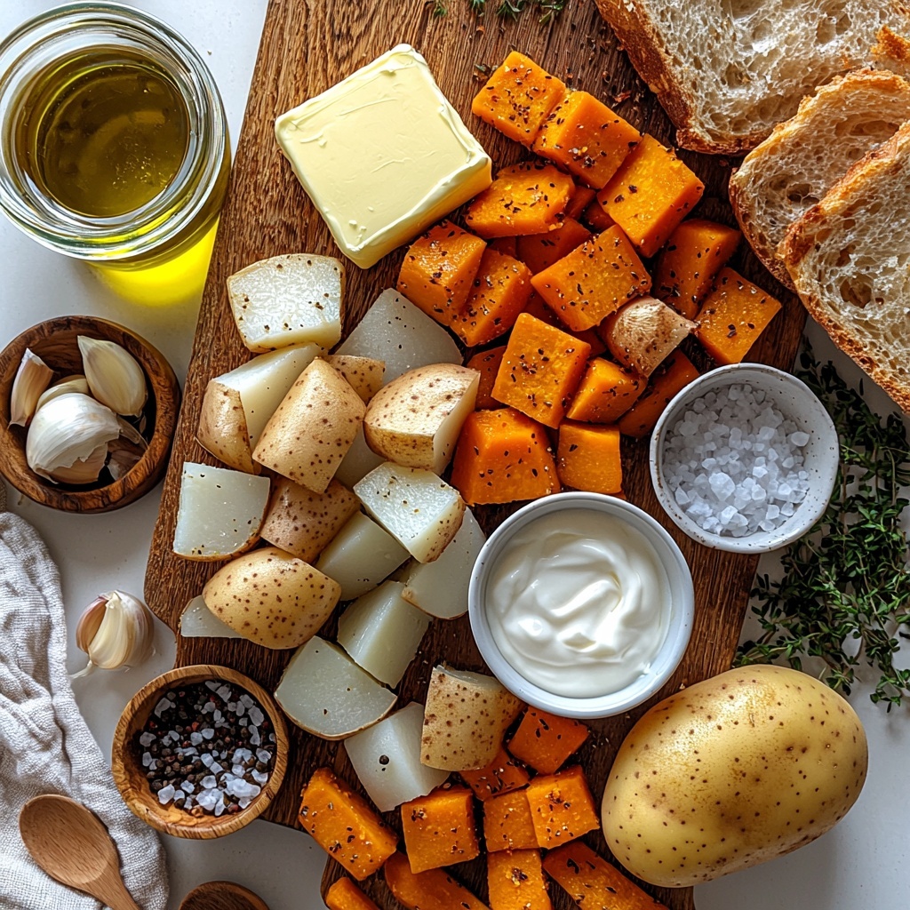 - Large potato, peeled and cubed (1, ~300g): Offers hearty body and silky texture when cooked and blended.