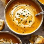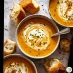 Warm crusty bread is a natural companion—perfect for soaking up every last bit of this luscious soup. For a heartier meal, serve alongside a crisp green salad tossed with a light vinaigrette to add a refreshing contrast to the rich, silky soup.