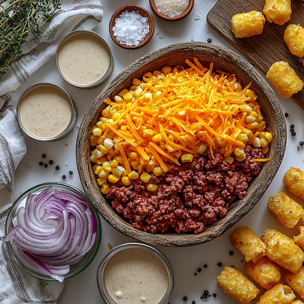 - 1 bag (32 oz) frozen tater tots: Creates a golden, crispy topping that everyone loves.