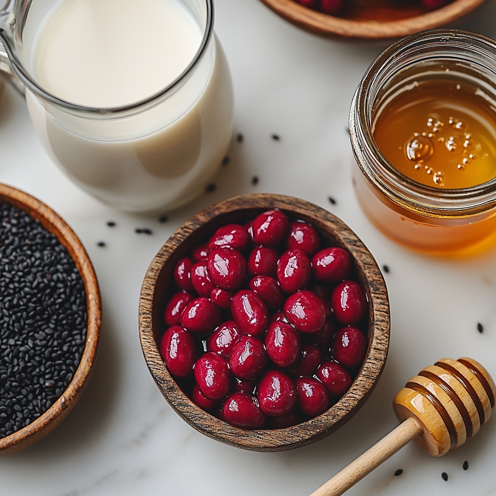 Gathering the right ingredients is half the magic of this Cozy Red Bean & Black Sesame Milk Tea for Refreshing Sips Recipe. Each component plays a critical role in balancing richness, texture, and that gorgeous inviting color that makes this drink stand out.