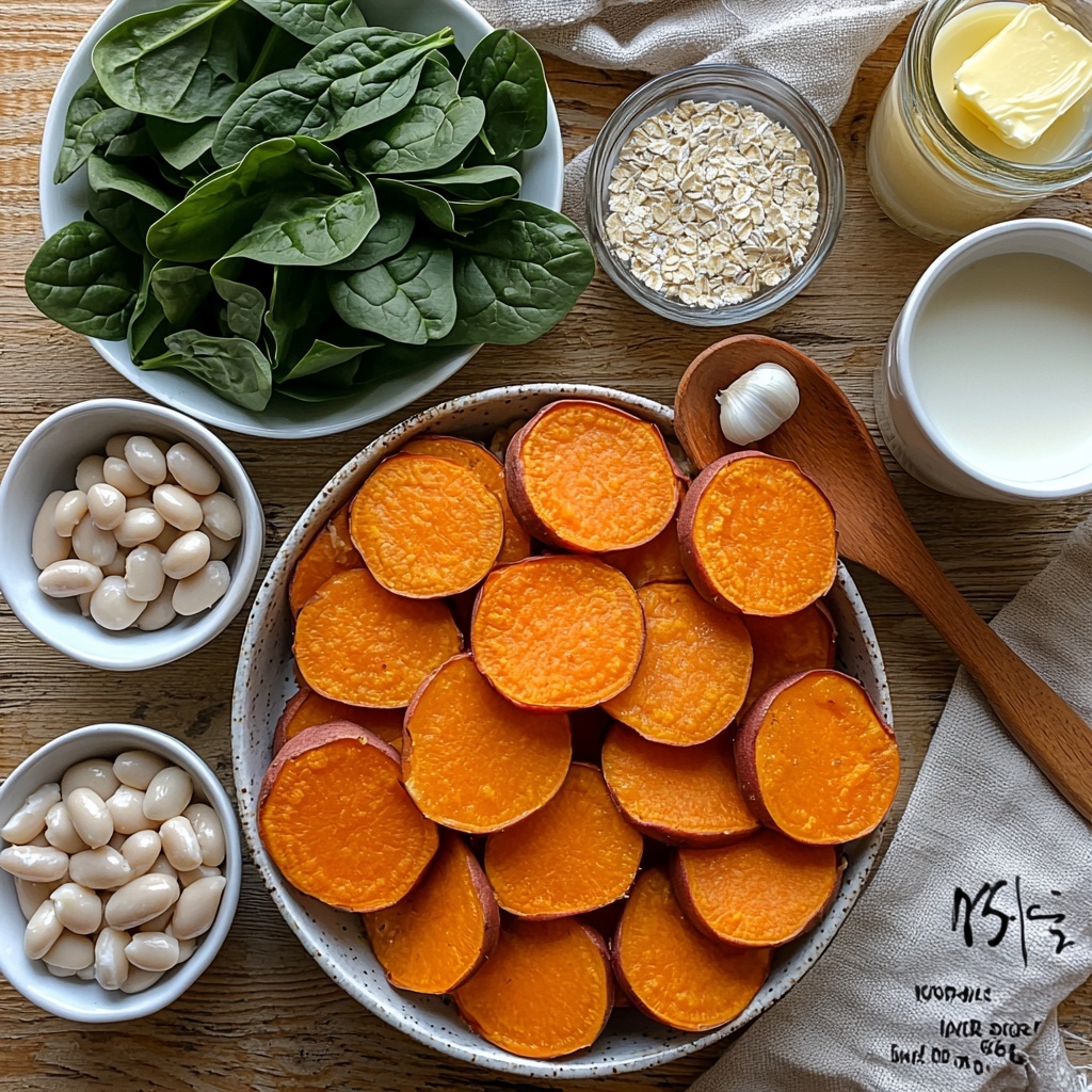 The magic of this Cozy Spinach and Sweet Potato Casserole Recipe lies in its simple yet thoughtfully chosen ingredients. Each one plays a role in building layers of flavor and providing a range of textures and colors that make this dish pop off the table.