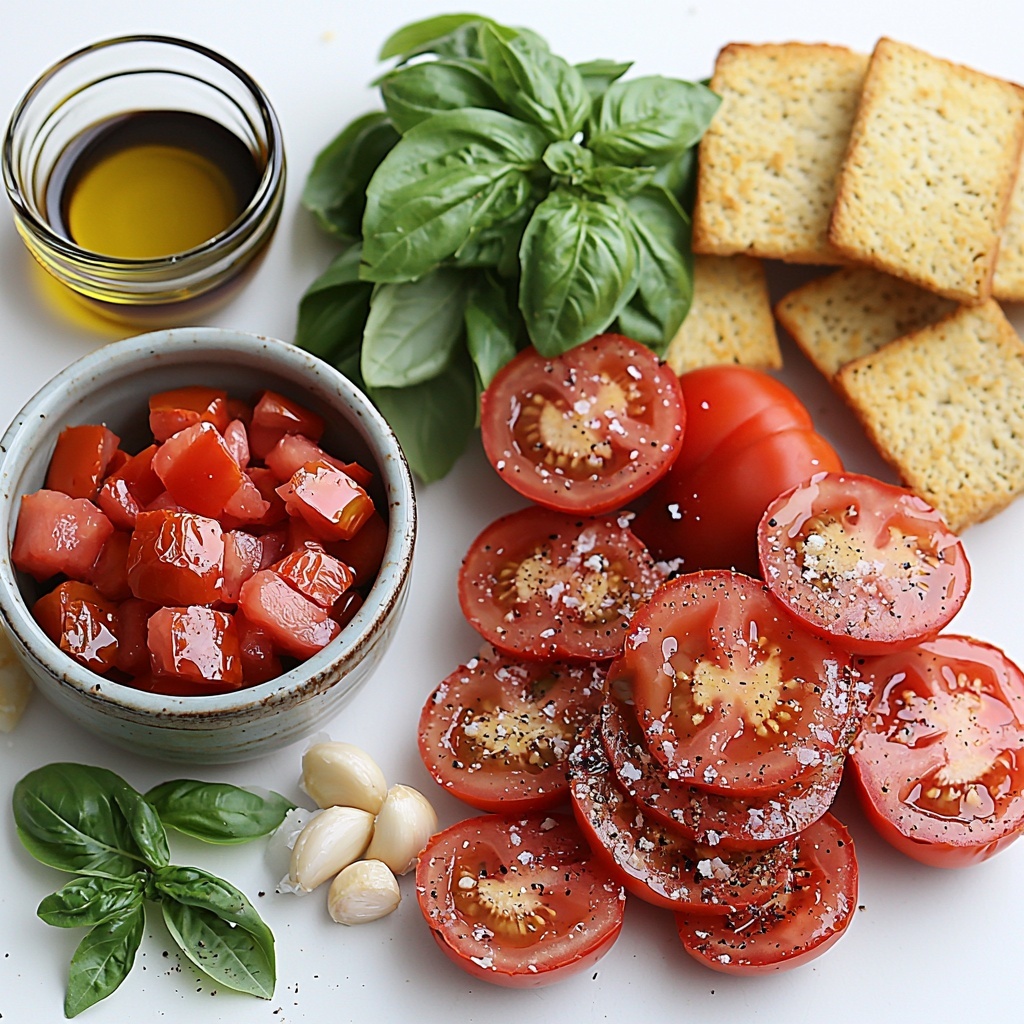 Gathering the right ingredients is the first step toward making a dip that bursts with flavor and has a perfect balance of textures. Each component plays a crucial role—from the juiciness of ripe tomatoes to the aromatic basil that lifts the whole dish.