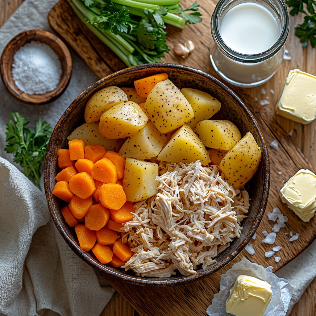 This comforting Chicken Potato Soup features tender shredded chicken, hearty potatoes, and a medley of vegetables in a creamy broth. Perfect for cozy meals, this easy-to-make soup combines wholesome ingredients and simple techniques to create a satisfying dish that’s rich in flavor and texture.