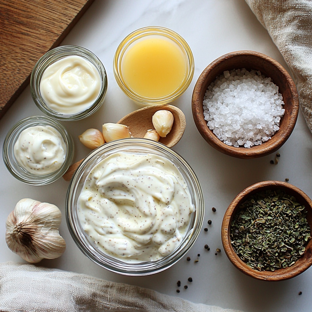 Getting this sauce right is all about fresh, straightforward ingredients that blend beautifully to deliver that signature creamy yet garlicky taste. Each component plays its part in balancing richness, tang, and herbaceous depth, so using quality staples will really shine through.