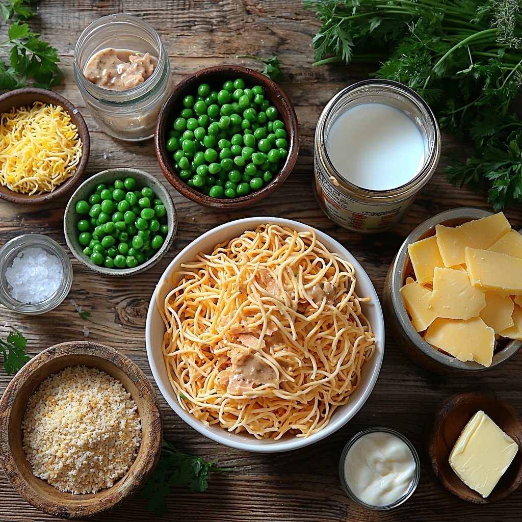 This Creamy Tuna Noodle Bake Recipe relies on simple but essential ingredients that create layers of texture, flavor, and that irresistible creaminess you’re after. Each component plays a vital role—whether it’s adding richness, freshness, or a cheesy kick that makes this dish so memorable.