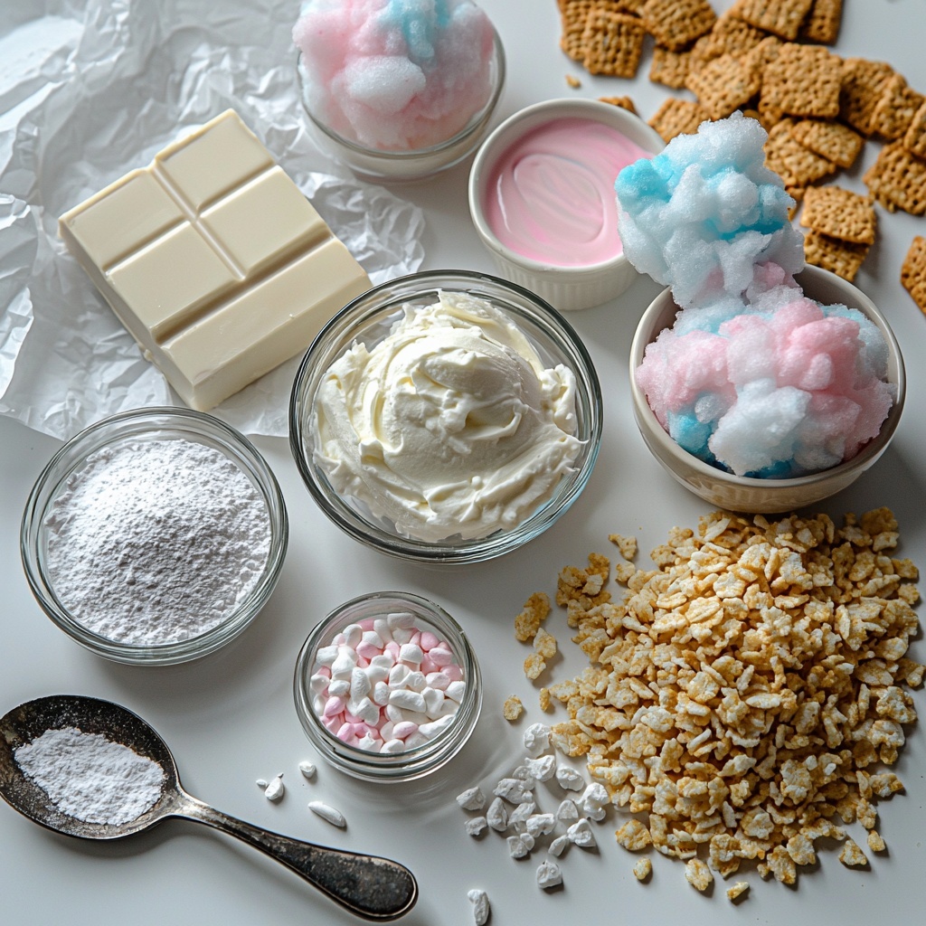 Gathering simple yet essential ingredients is the key to making this Crispy Cotton Candy Cheesecake Bombs Recipe come to life. Each component plays a crucial role in perfecting the taste, texture, and eye-catching appeal of these treats.