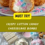 Just before serving, add small pieces of cotton candy to each bomb. This final garnish not only enhances the visual appeal but delivers a whimsical burst of fluffy sweetness that ties the whole Crispy Cotton Candy Cheesecake Bombs Recipe together.