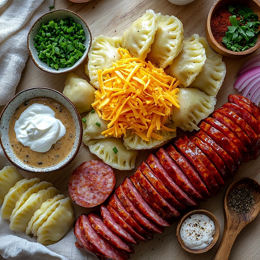 The magic of this casserole lies in its straightforward, essential ingredients. Each one plays a key role—from the savory kielbasa adding a smoky snap, to the creamy blend of sour cream and mushroom soup creating luscious layers of flavor. The frozen potato and cheese pierogi bring a soft, comforting texture that is absolutely irresistible once baked in the crockpot.