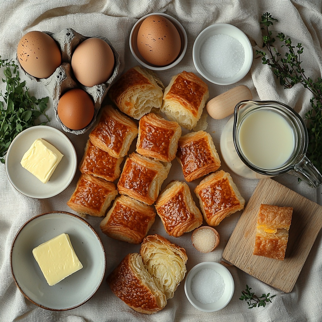 Getting started is a breeze with this simple yet essential list of ingredients. Each one plays a vital role in balancing the rich, creamy texture and aromatic lift that make this Croissant Bread Pudding with Orange Zest and Caramel Sauce Recipe so unforgettable.