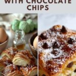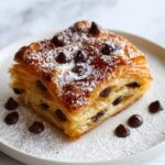 Once baked, let the Croissant Breakfast Bake with Chocolate Chips Recipe cool for a bit so it sets slightly and is easier to serve. For a little extra flair, dust the top with powdered sugar and scatter fresh berries on it. This simple garnish adds a delightful freshness and an elegant touch that’s sure to impress.