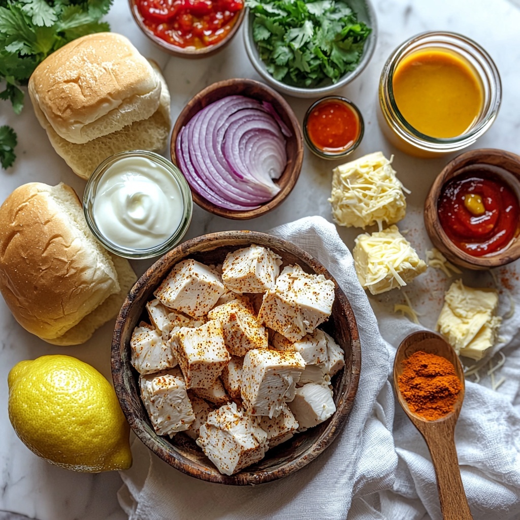 This Curried Chicken Slider Sandwiches Recipe calls for a handful of straightforward yet crucial ingredients that each play a special role. From the creamy yogurt that tenderizes the chicken to the colorful blend of spices delivering depth, and the fresh herbs and garlic butter that elevate the richness, every component works in harmony to create a dish bursting with flavor and color.