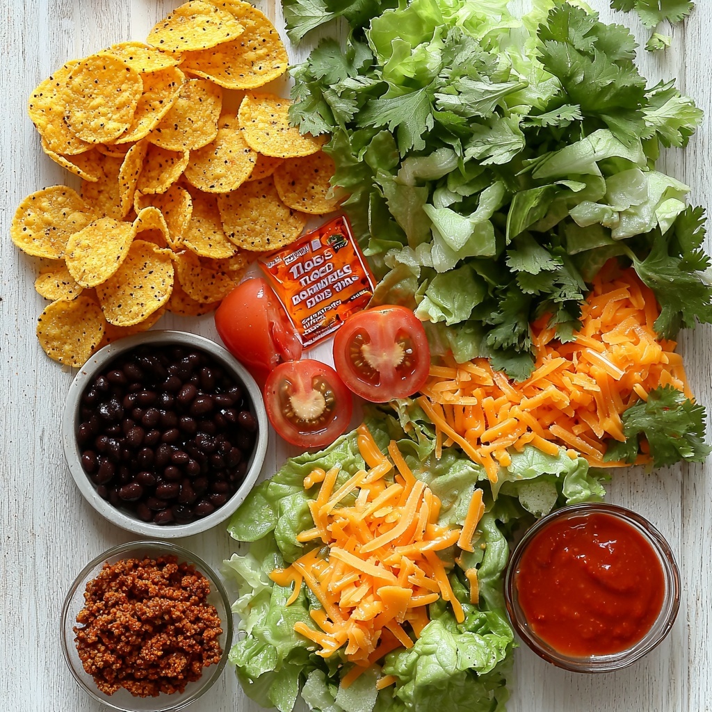 The magic of this Doritos Taco Salad Recipe lies in its simple but perfectly balanced ingredients. Each one plays a starring role—from the bright crunch of Romaine to the rich warmth of seasoned beef and the crunchy, cheesy goodness of Doritos that ties it all together.