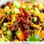 Reheat the cooked ground beef gently in a skillet or microwave until warmed through. Once warm, mix it back into fresh salad ingredients along with your dressing and freshly crushed Doritos for the best flavor and crunch experience.